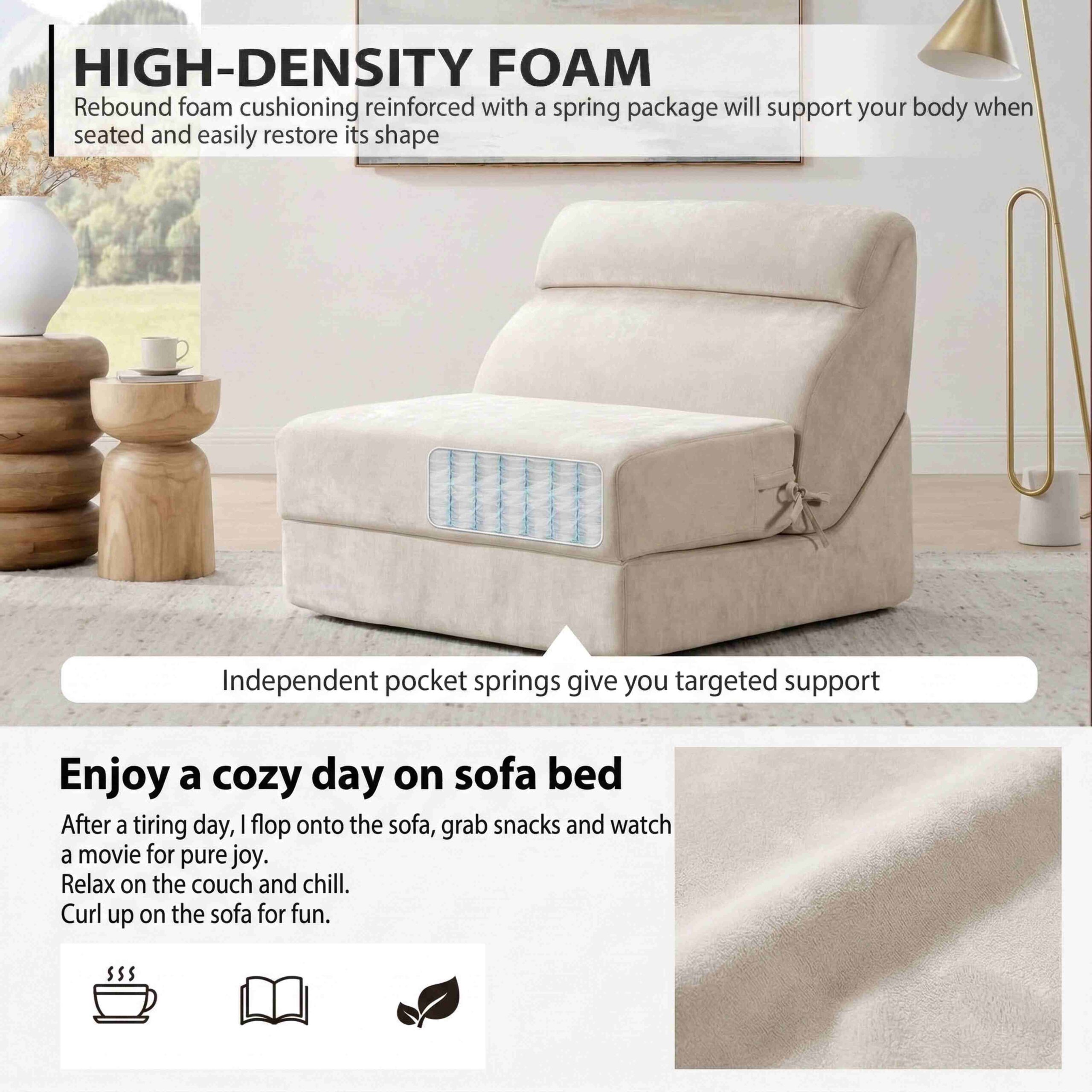 This vacuum-sealed, no-assembly​ sofa expands in hours to reveal plush, breathable velvet and cloud-like support from high-density sponge + pocket springs. Rearrange its modular sections for napping, reading, or entertaining—perfect for small spaces, busy lifestyles, or anyone craving style + comfort without the hassle.